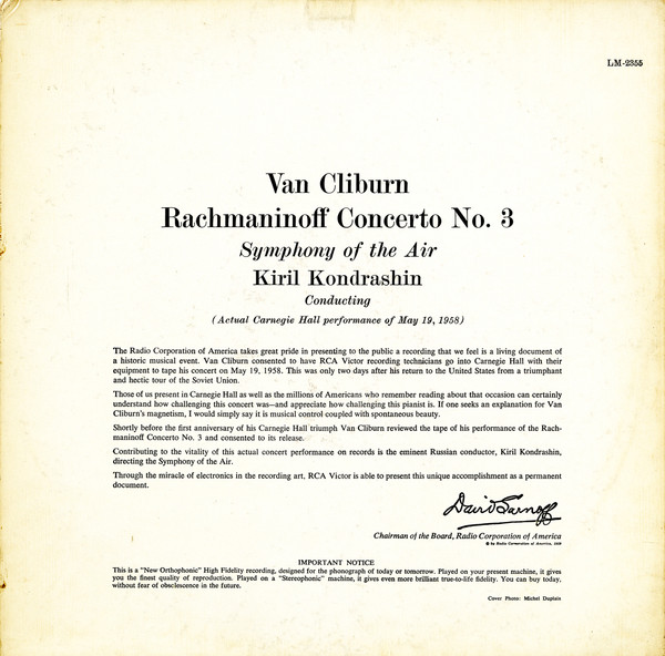 Rachmaninoff* – Van Cliburn, Symphony Of The Air, Kiril Kondrashin – Concerto No. 3