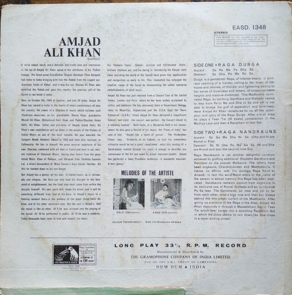 Raga Durga, Raga Nandkauns, Amjad Ali Khan, Vinyl Record, Lp