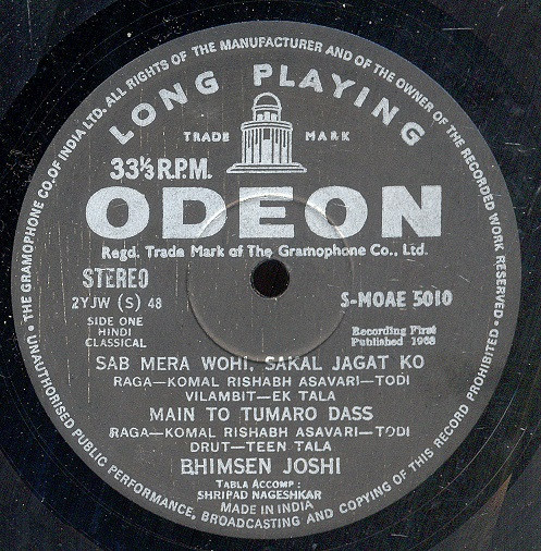 Home Indian Classical Vocal Vinyl Raga Komal Rishabh Asavari Todi / Raga Marwa, Bhimsen Joshi, Vinyl Record, Lp