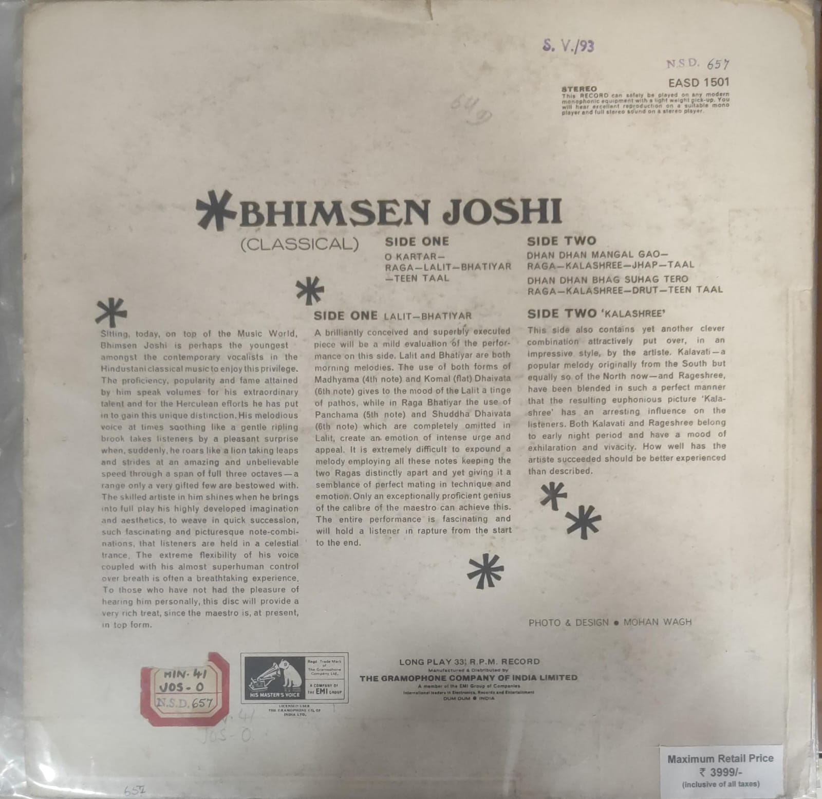 Home Indian Classical Vocal Vinyl Raga Lalit-Bhatiyar / Raga Kalashree, Pandit Bhimsen Joshi, Vinyl Record, Lp