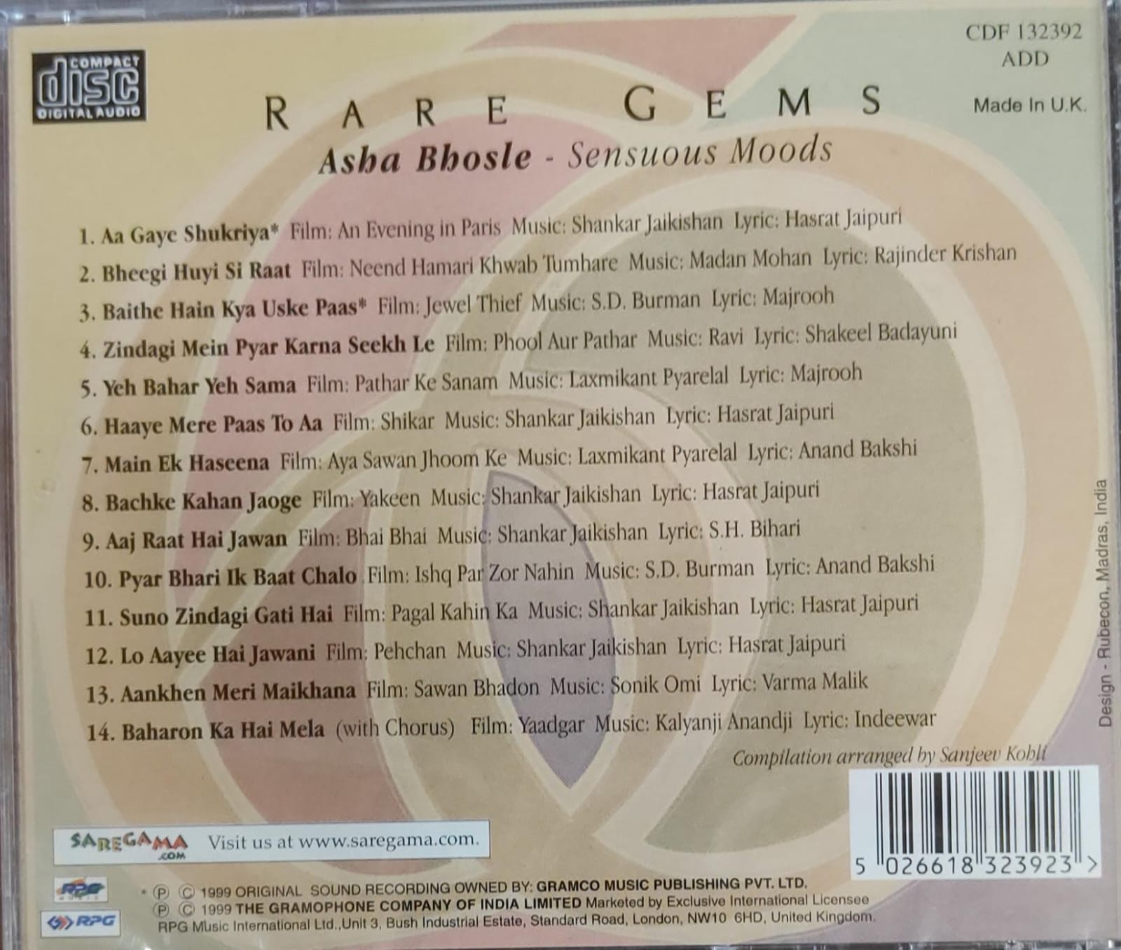 Rare Gems – Sensuous Moods, Asha Bhosle, Audio Cd, Import(UK)