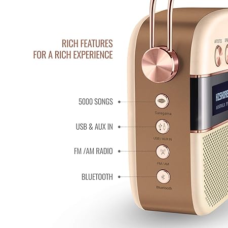 Saregama Carvaan 2.0 Hindi Portable Music Player – Sound by Harman/Kardon with 5000 Preloaded Songs and Podcast, FM/BT/AUX(Rose Gold)