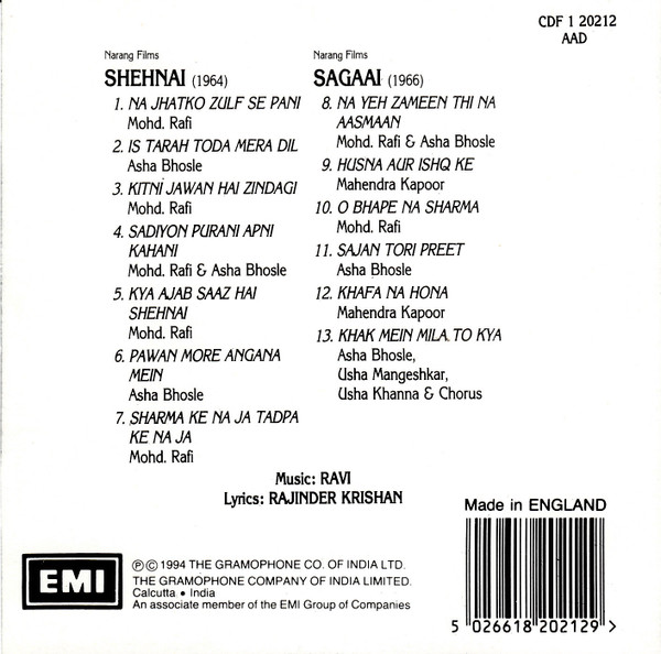Shehnai / Sagaai , Ravi, Audio Cd, (Made In England)