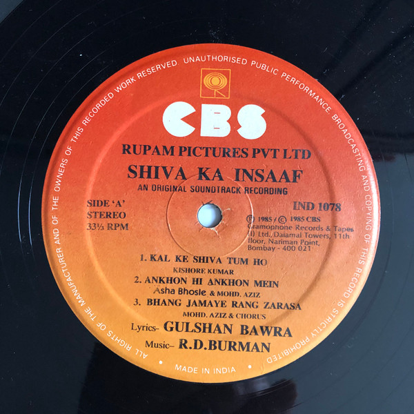 Copyright © – CBS Gramophone Records & Tapes (India) Ltd.