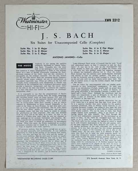 Bach*, Antonio Janigro – Suites For Solo Cello