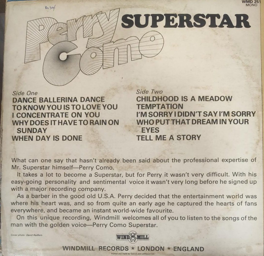 Superstar, Perry Como, Vinyl Record, Lp