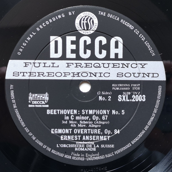 Symphony No. 5 ∙ Egmont Overture, Beethoven, Ansermet, L’Orchestre De La Suisse Romande, Vinyl Record, Lp