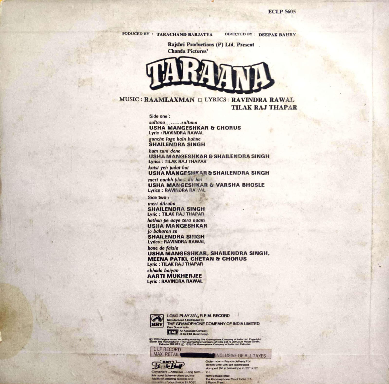 SKU: ECLP-5605 Categories: 33 RPM, Bollywood Vinyl Tag: Near Mint Brand: EMI - The Gramophone Company