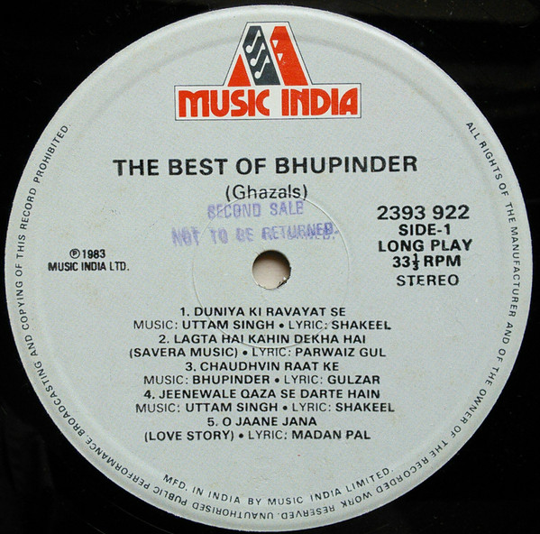 Bhupinder* – The Best Of Bhupinder (Ghazals)