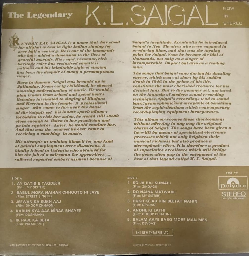 K. L. Saigal – The Legendary K. L. Saigal