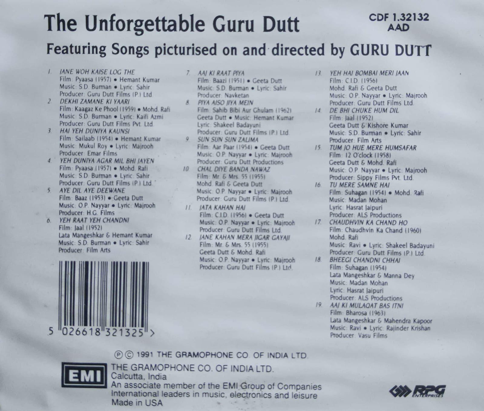 The Unforgettable Guru Dutt, Guru Dutt, Audio Cd