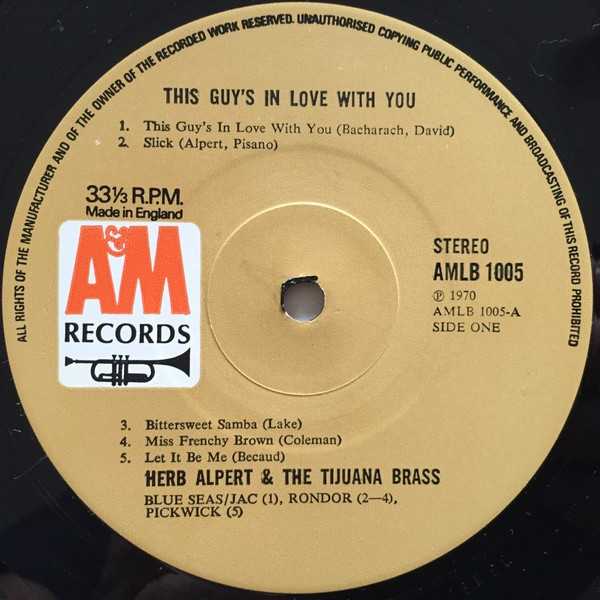 A1 This Guy’s In Love WIth You – Written-By – Bacharach/David*