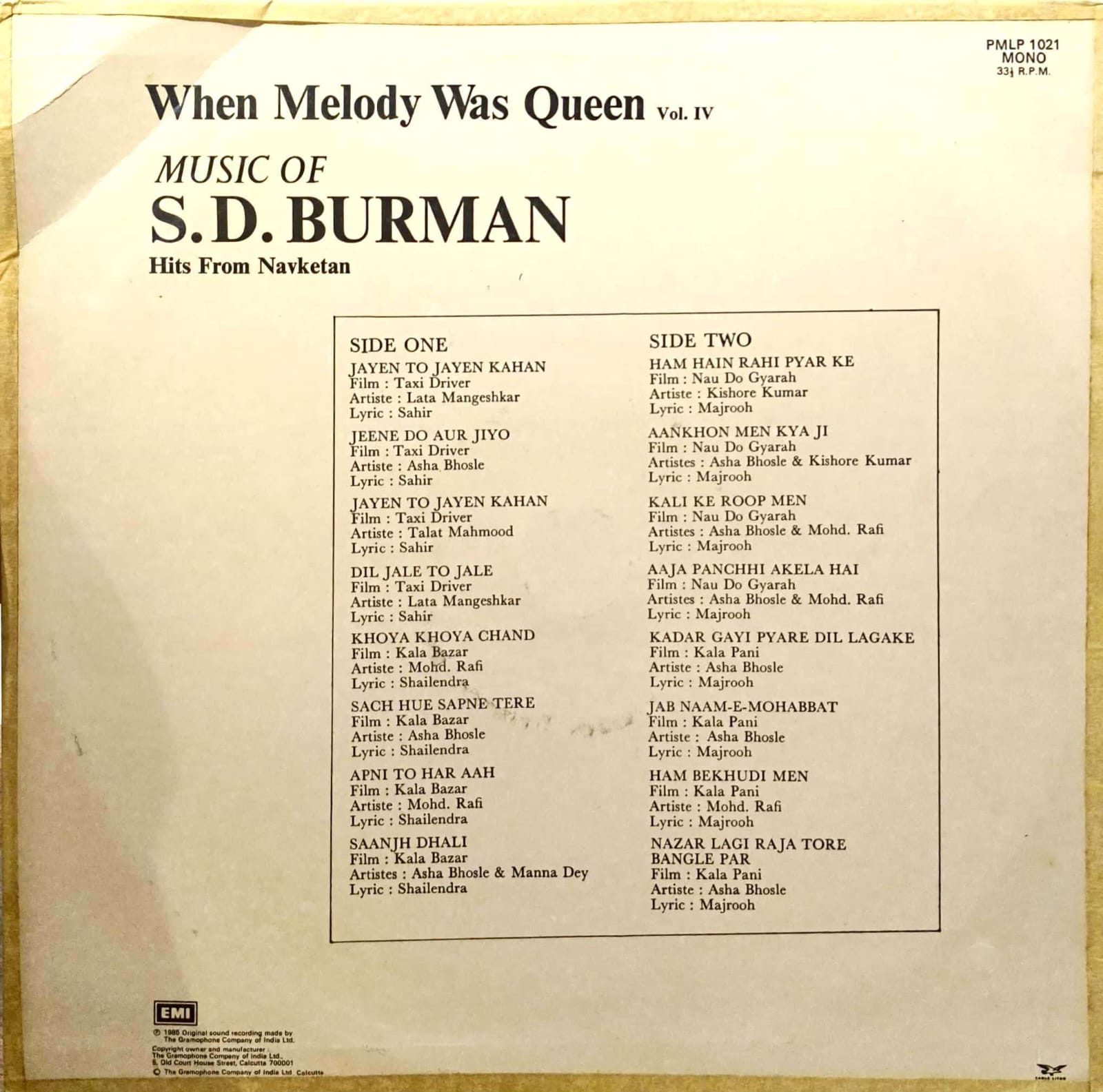 SKU: PMLP 1021 Categories: 33 RPM, Bollywood Vinyl, Singer Based Compilation Tag: Condition 95% Brand: EMI - The Gramophone Company
