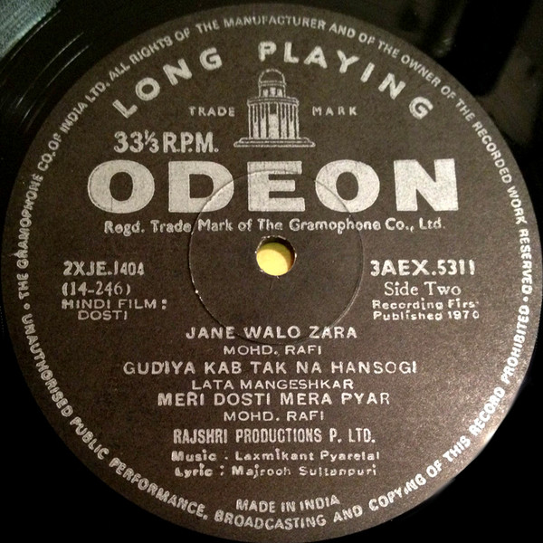 Laxmikant Pyarelal* – Dosti Lyrics By – Majrooh Sultanpuri Music By, Music By [Music Directors] – Laxmikant Pyarelal*   Label: